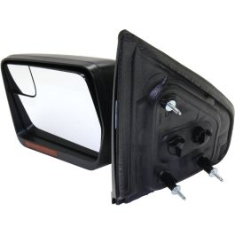 Upgrade your FORD/PU (F150)(EXC SVT RAPTOR) with this high-quality Left (Driver Side) Door Mirror, designed to be a direct replacement part ensuring perfect OEM fit and function. This mirror features power adjustment, heating elements, integrated turn signal lights, and includes a spot glass for enhanced visibility, all encased in a sleek black finish.